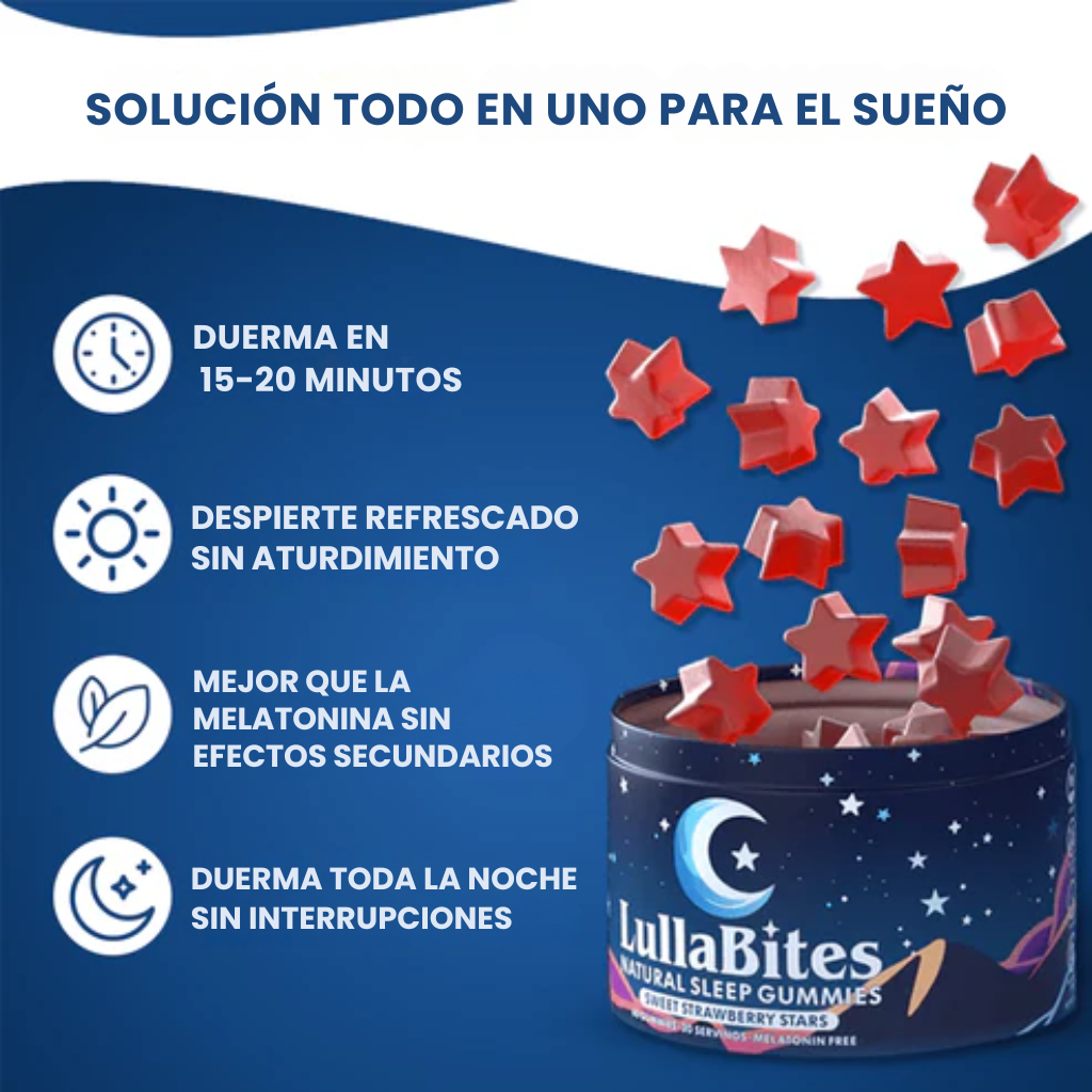 LullaBites apoya el ciclo natural del sueño con magnesio, L-teanina y botánicos calmantes. Sin melatonina, te ayuda a relajarte, dormir más rápido y despertar despejado, sin sensación de aturdimiento.